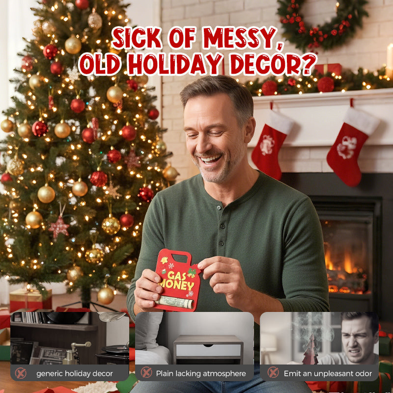 GAS CAN JOY BURST - This playful gas-can ornament flips ordinary gifting on its head. It turns “here’s some cash” into a mini holiday moment, guaranteed to spark smiles and festive laughter around the tree.