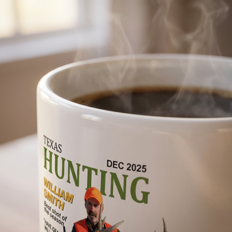 HUNTING-THEMED DESIGN: Celebrate your passion for the great outdoors with this unique magazine-cover print. It's the perfect way to bring the spirit of the hunt to your morning coffee routine.