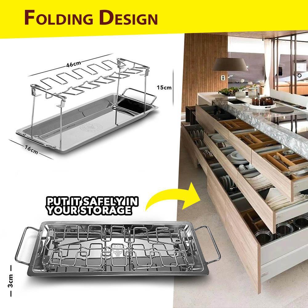 With our innovative Roasted Chicken Rack Holder, roasting or grilling chicken is now incredibly convenient and easy! Simply hang the chicken drumsticks on the rack, place it in the oven or on the BBQ grill, and you're done. This rack allows you to grill all your drumsticks at once, ensuring they come out evenly cooked, juicy, and perfectly browned every time. Say goodbye to burnt or undercooked chicken!
