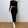 Ribbed Knit Long Sleeve Crop Top & Midi Skirt Set