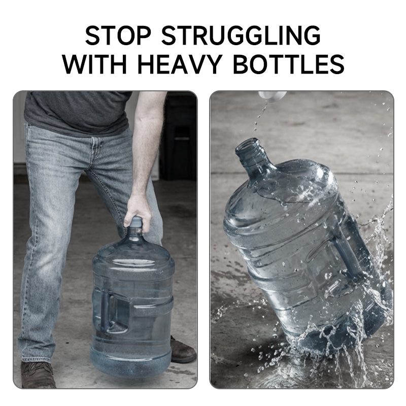 ERGONOMIC VERTICAL GRIP - Reduces strain on your wrist and back. This scientifically designed handle allows for a more natural lifting posture, making the heavy task of moving large water jugs feel significantly easier and more comfortable.