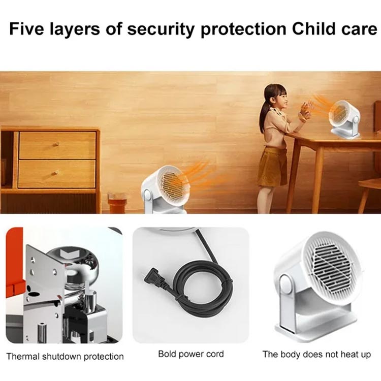 ROTATABLE AND ANGLE ADJUSTABLE: With a rotatable head and adjustable angle, you can easily direct the airflow exactly where you need it, making it versatile for different settings and user preferences. Featuring multiple protections, including overheating and heat-insulation, making it suitable for users of all ages.