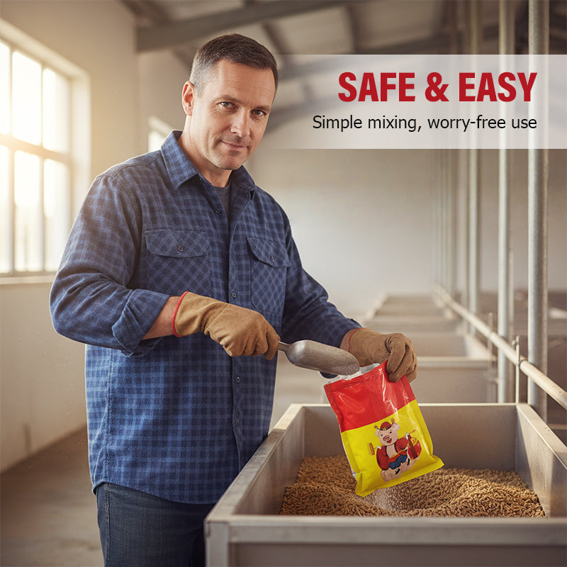 REFUERZO DEL SISTEMA INMUNOLÓGICO: Más que solo un suplemento para aumentar de peso, este producto fortalece el sistema inmunológico. Su uso regular ayuda a los cerdos a resistir enfermedades comunes, reduciendo los costos veterinarios y las pérdidas, y le brinda tranquilidad al mantener animales más sanos.